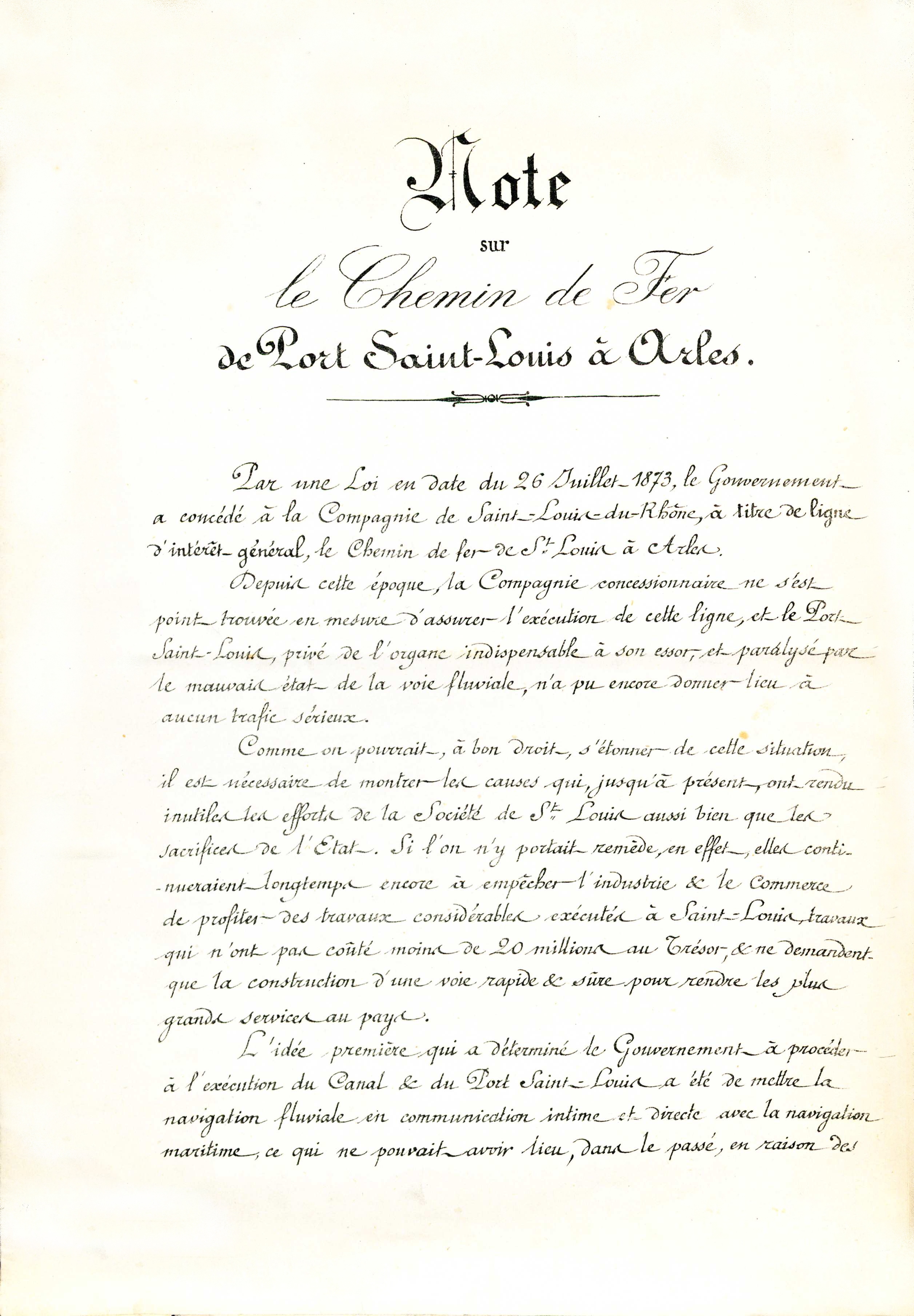 Note sur le chemin de fer de Port Saint-Louis à Arles