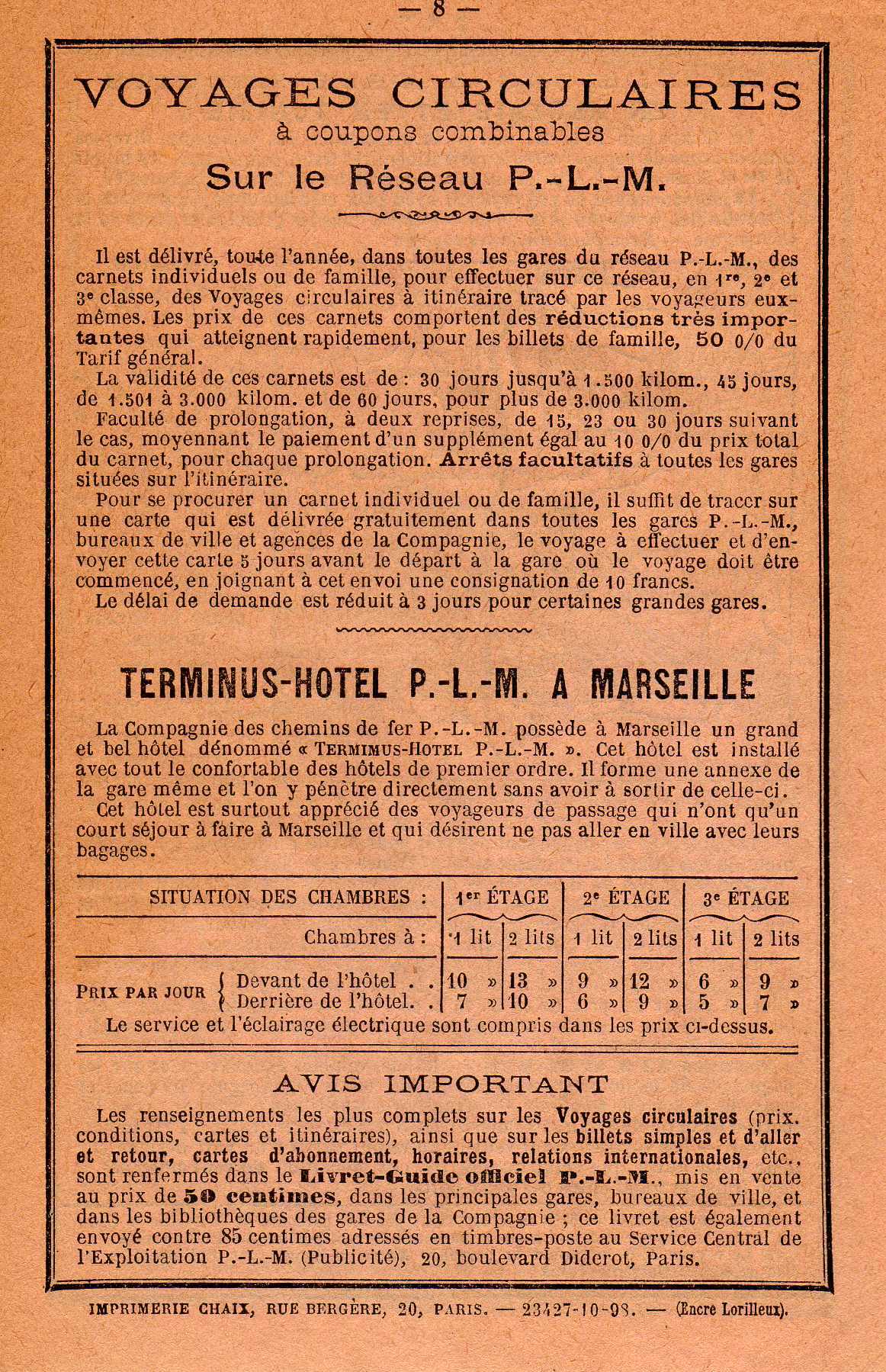 Automne 1898. Voyages vers l'Afrique du Nord et l'Orient. Imprimé sur les presses de la maison Chaix.