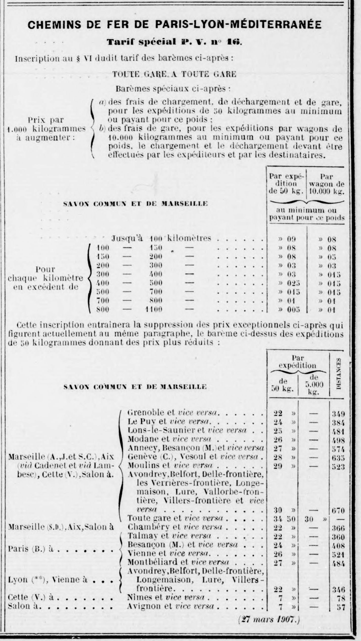 "Bulletin des propositions de tarifs soumises à l'homologation ministérielle". Numéro du 1 avril 1907.