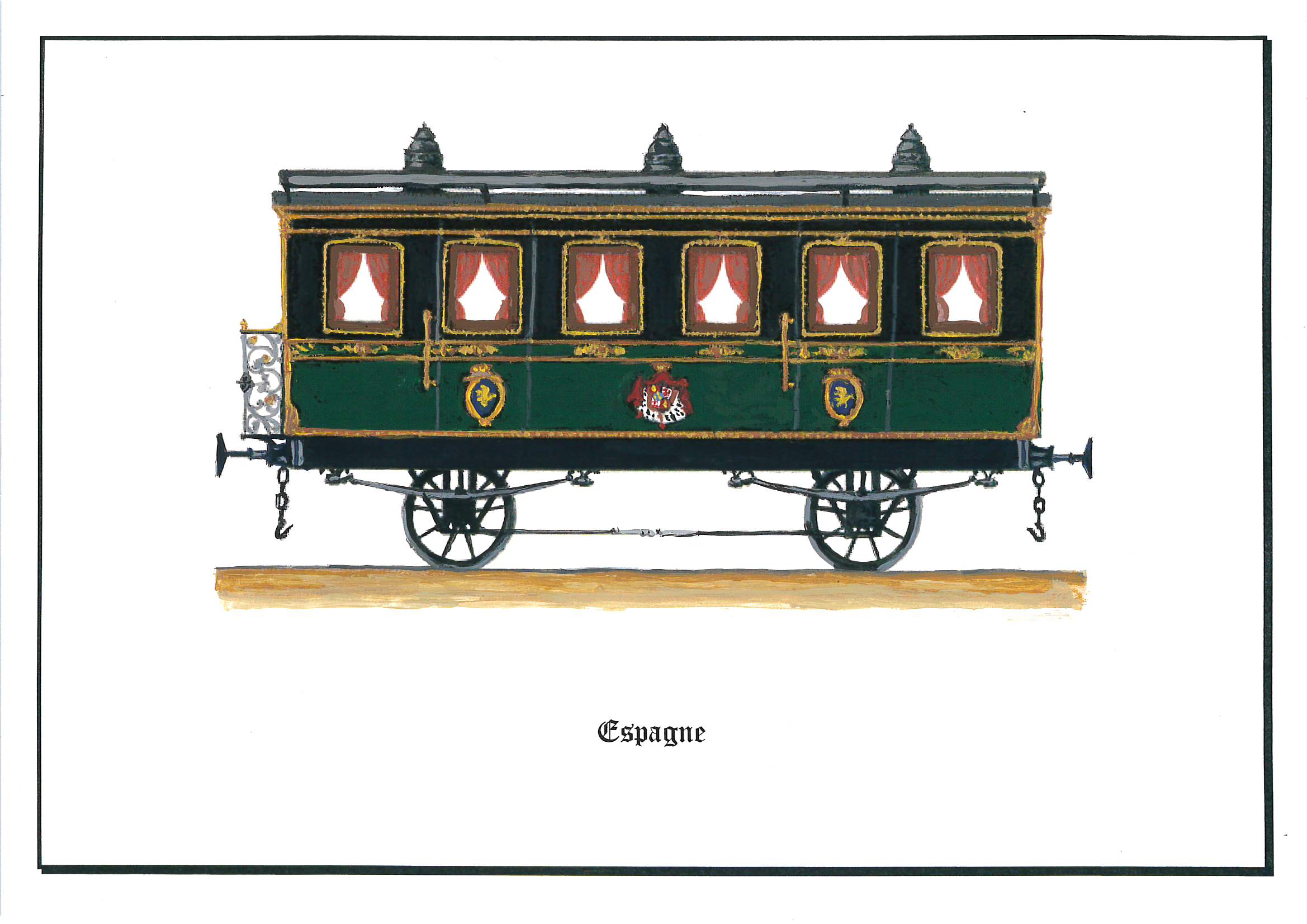 Voiture salon de la reine d'Espagne comparable au train impérial de l'Est de Napoléon III. JP Longato