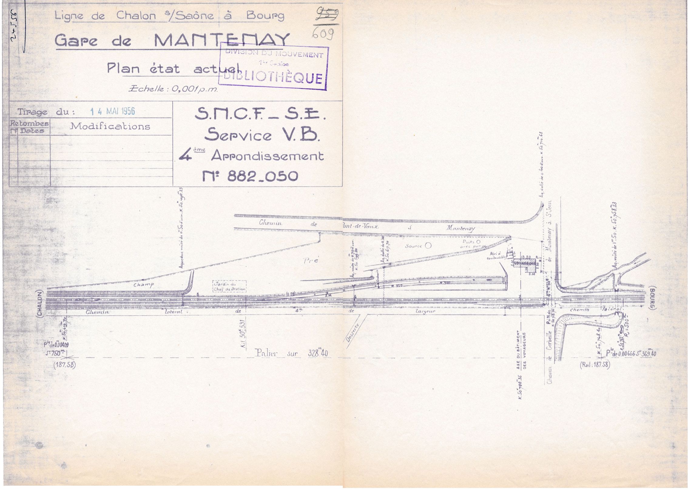 Plan de voie de la gare de Mantenay. Situation au 14 mai 1956