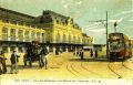 Gare initiale au premier plan, gare définitive en construction au second plan (1908)